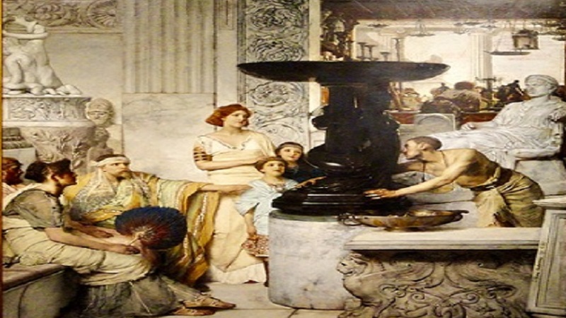 متابعات: في عام 1874 رسم الفنان الهولندي لورانس ألما تديما واحدة من أكبر أعماله بتقنية هائلة بعنوان معرض النحت وتبلغ أبعادها 223 × 174 سم. رسم فيها بيئة لمعبد روماني قديم وقام بتضمين زوجتيه فيها وطفلتيه بالإضافة إلى نفسه.