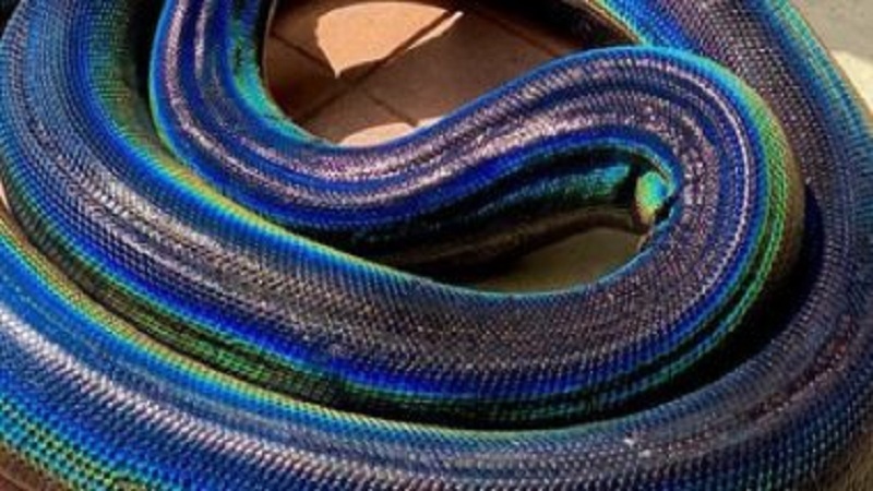 بالصور|| أفعى نادرة تعكس ألوان فريدة عند تعرضها لأشعة الشمس