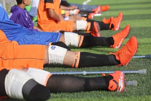بالصور|| مبتورو الأطراف يتحدون الإعاقة ويشكلون فريقاً لكرة القدم بغزة