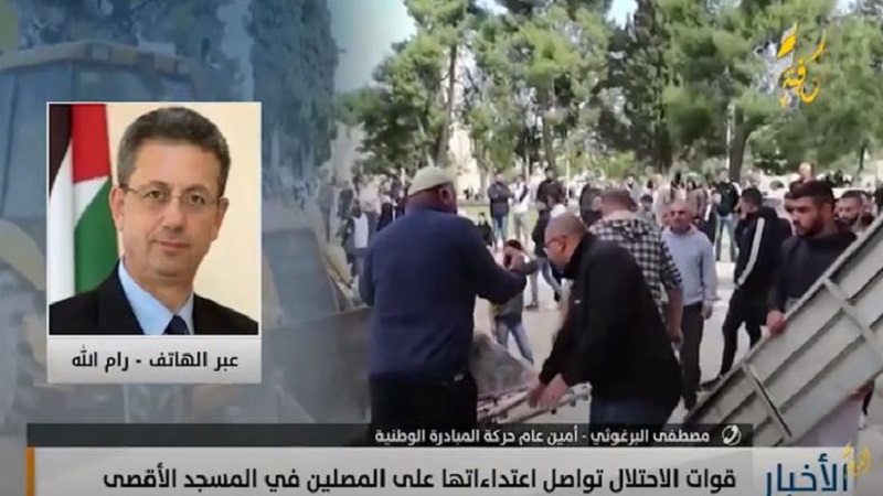 وأكد البرغوثي، خلال لقائه على قناة «الكوفية»، اليوم الجمعة، أن ما يجري في المسجد الأقصى من اعتداء الاحتلال على المصلين والمرابطين، يهدف من خلاله فرض وقائع جديدة في المدينة المقدسة.