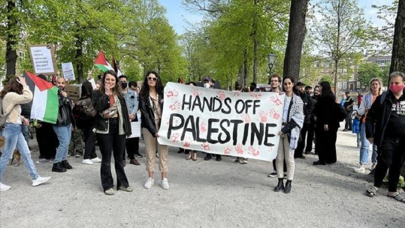 واجتمع المتظاهرين قرب مبنى البرلمان الهولندي في لاهاي، وصولًا إلى ميدان "كويكامب"، مرددين هتافات تطالب بالحرية لفلسطين.