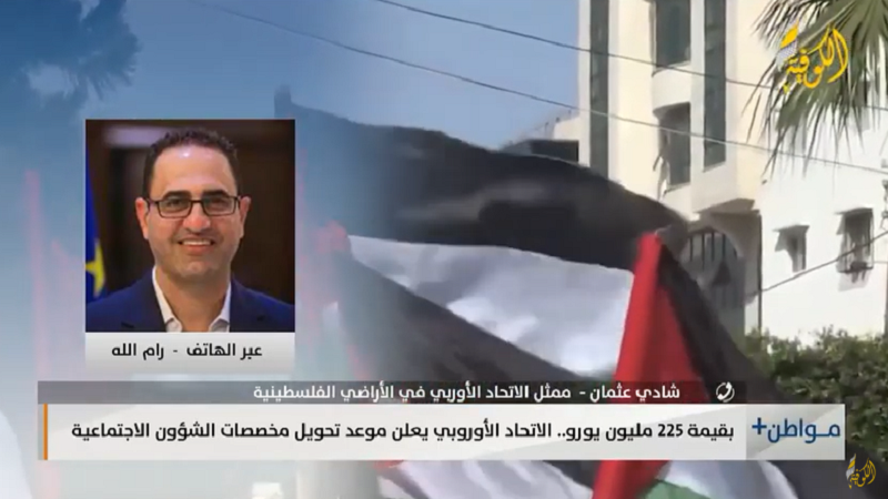 القدس المحتلة: أكد الناطق باسم الاتحاد الأوروبي في القدس، شادي عثمان، أنه خلال الأيام القليلة المقبلة، سيتم تحويل مساهمة الاتحاد الأوروبي بشأن مخصصات الشؤون الاجتماعية إلى السلطة الفلسطينية.