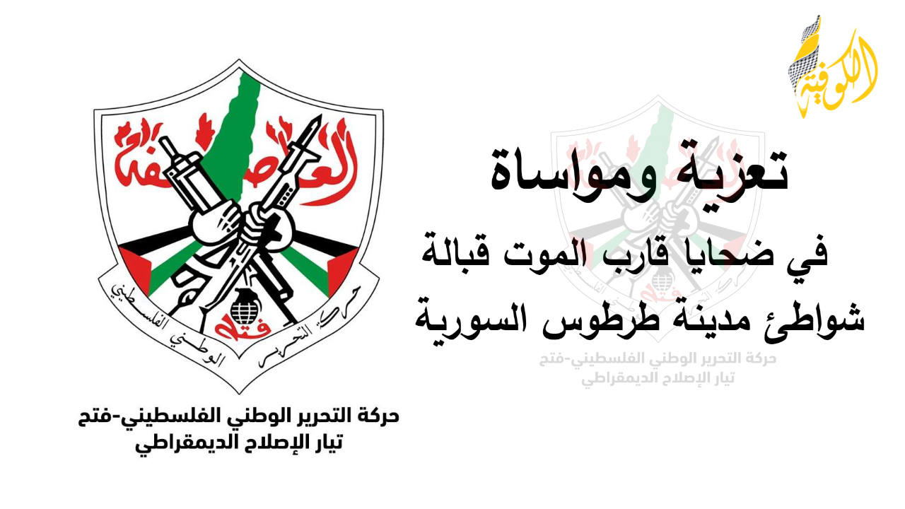 الكوفية غزة: نعى تيار الإصلاح الديمقراطي في حركة فتح، ضحايا كارثة غرق المركب قبالة ساحل طرطوس السوري، مقدماً تعازيه لعموم شعبنا بمصابه الجلل، وإلى عائلات الضحايا، وعلى وجه الخصوص أهلنا في مخيمات لبنان، وتحديداً مخيم نهر البارد، وإلى عائلات الضحايا من الأشقاء في سوريا ولبنان.