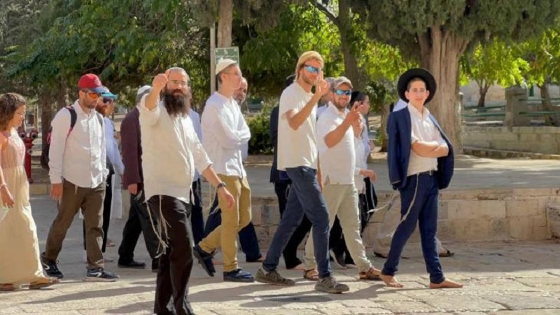 ويقتحم المستوطنون باحات المسجد الأقصى المبارك، يوميًا ما عدا الجمعة والسبت، على فترات صباحية ومسائية في محاولة لفرض التقسيم الزماني والمكاني فيه.