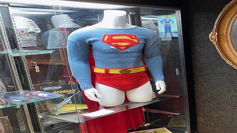 والبدلة هي النسخة الأصلية التي ارتداها الممثل الأمريكي كريستوفر دولييه ريف في الجزء الأول من السلسلة التي عرضت في 1978، واستخدمت أيضاً في جزأيها الثاني والثالث وفق دار المزادات "بروب ستار".