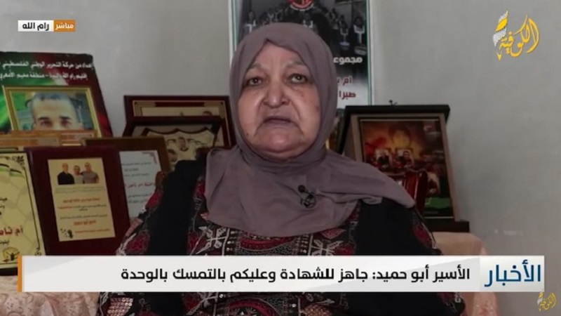 وأكدت والدة الأسير ناصر، خلال لقائها على شاشة «الكوفية»، مساء اليوم الأحد، أن معنويات نجلها عالية، ويرفع دومًا علامة النصر.