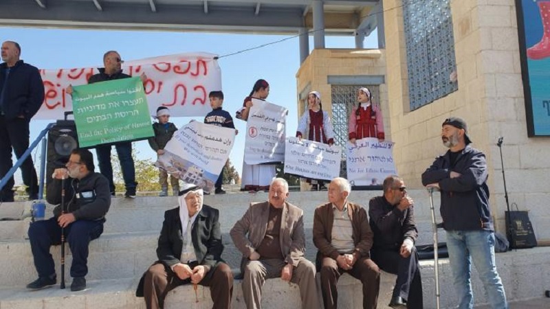 القدس المحتلة: تظاهر عشرات المواطنين، اليوم الثلاثاء، قبالة مقر بلدية الاحتلال في القدس، احتجاجا على قرارها هدم بناية سكنية تضم 12 شقة في سلوان.