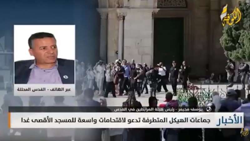 الكوفية الكوفية: حذر رئيس هيئة المرابطين في القدس يوسف مخيمر من دعوات جماعات استيطانية متطرفة إلى أوسع اقتحام للمسجد الأقصى يوم غدٍ، وقال بأن "هذه الدعوات المحمومة التي تنطلق من عصابات المستوطنين، لا سيما الناشطة في اقتحام الأقصى وتقسيمه مكانيا وزمانيا، تسعى إلى تغيير الطابع التاريخي والجغرافي لمدينة القدس، بدعم من وزراء حكومة الاحتلال اليمينة مثل المتطرف إيتمار بن غفير.