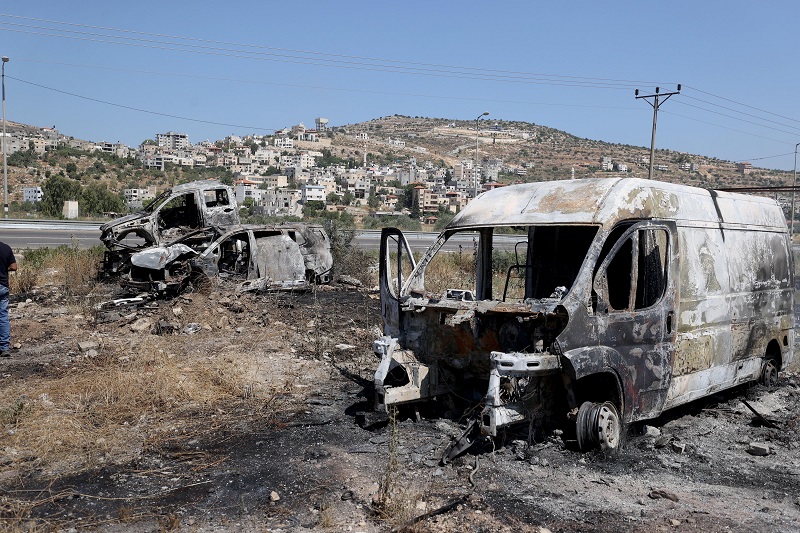 وقال سكان ترمسعيا إنهم شاهدوا ما بين 200 و 300 إسرائيلي يهاجمون قريتهم، الأربعاء، ويهاجمون السكان ويدمرون عشرات المنازل والسيارات الأراضي الزراعية، بحسب "تايمز اوف إسرائيل".