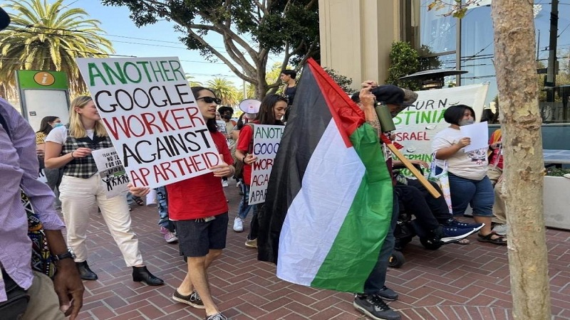 وقال منظمي التظاهرة، في بيان، اليوم الأحد، إن تكنولوجيا غوغل تغذي الأجهزة الأمنية الإسرائيلية، وتمكّن وتعزز الفصل العنصري.
