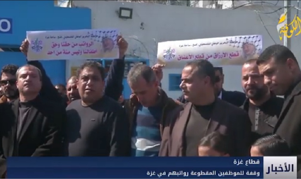 خاص: نظَّمَ مئات الموظفينَ المقطوعةِ رواتبُهُم صباحَ اليومِ وقفةً أمامَ مقرِّ المندوبِ السامي لحقوقِ الإنسانِ في مدينةِ غزة، احتجاجاً على قطْعِ رواتبهِم.