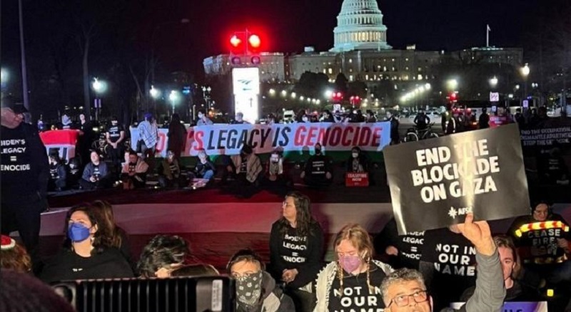 شهدت العاصمة الأمريكية واشنطن، اليوم الجمعة، تظاهرات للمطالبة بوقف العدوان الإسرائيلي على قطاع غزة.