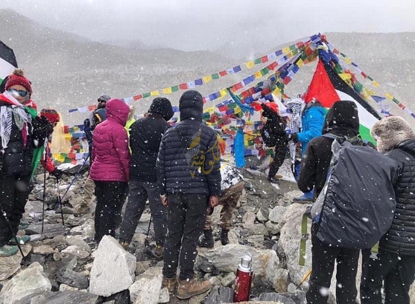 تمكن ٢٧ شاباً وفتاة فلسطينية من رفع العلم الفلسطيني وشعارات التضامن مع الأسرى والقدس على قاعدة جبل افيرست بارتفاع نحو 5300 متر.