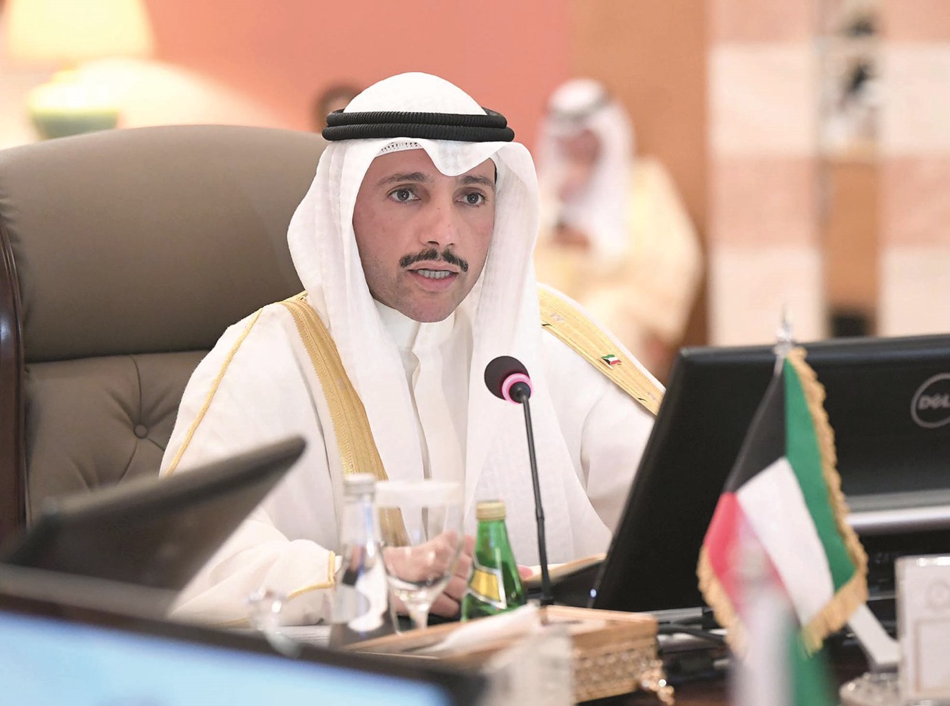وفيما يتعلق بالقضية الفلسطينية، أكد رئيس مجلس الأمة الكويتي، أن هناك محاولات جادة يقوم فيها بدور رئيسي لطرد "إسرائيل" من الاتحاد البرلماني الدولي وقريبًا سيأتي اليوم الذي يتم فيه تنفيذ هذا ذلك إقراراً لقيم العدالة.