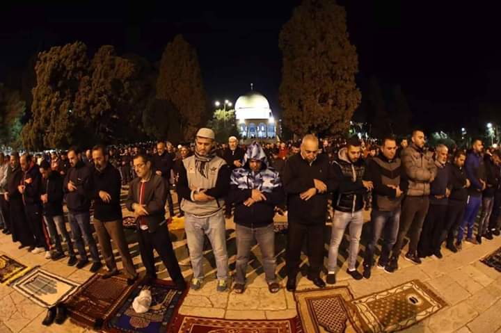 الآلاف يتحدون العجرفة الإسرائيلية ويؤدون صلاتي العشاء والتراويح في الأقصى