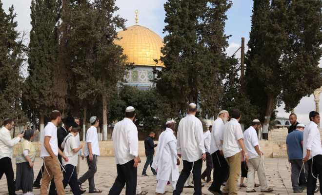 وأفادت مصادر محلية، بأن عشرات المستوطنين، اقتحموا المسجد الأقصى على شكل مجموعات من جهة باب المغاربة، ونفذوا جولات استفزازية في باحاته، وأدوا طقوسا تلمودية.