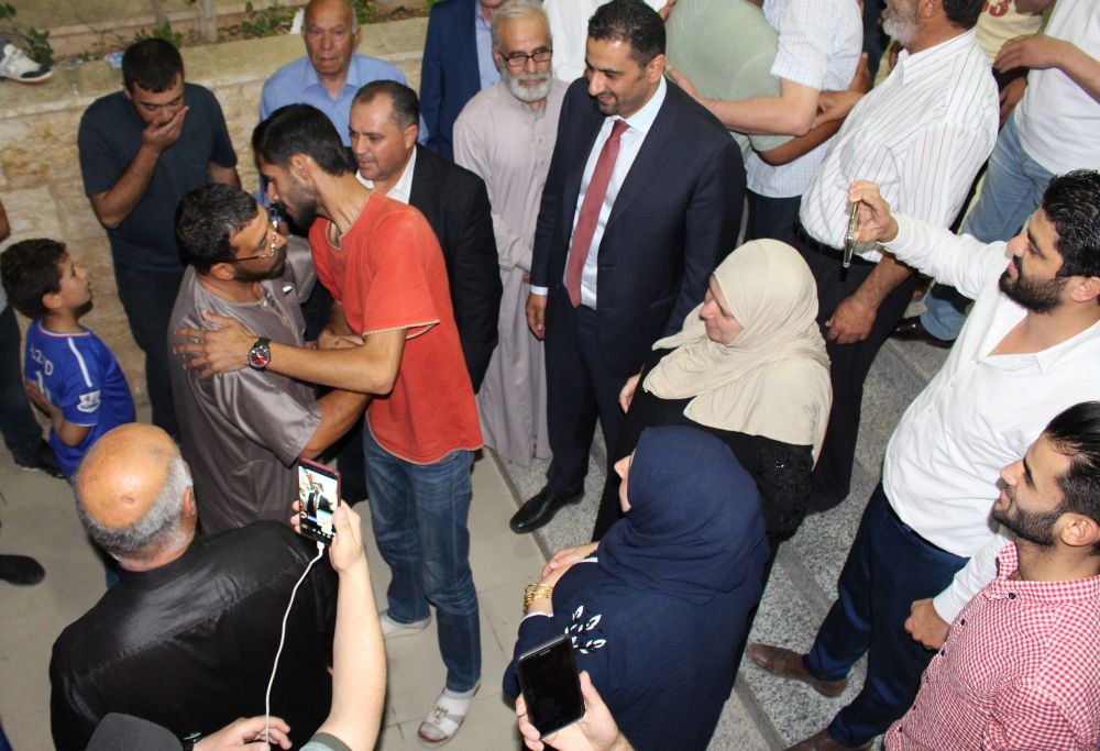 وبحسب وكالة الأناضول التركية، فإن حشدا كبيرا من ذوي المخطوفين كانوا في استقبالهم، في معبر جابر - نصيب الحدودي، تقدمهم عضو مجلس النواب (الغرفة الأولى للبرلمان) عن منطقتهم النائب خالد أبو حسان.