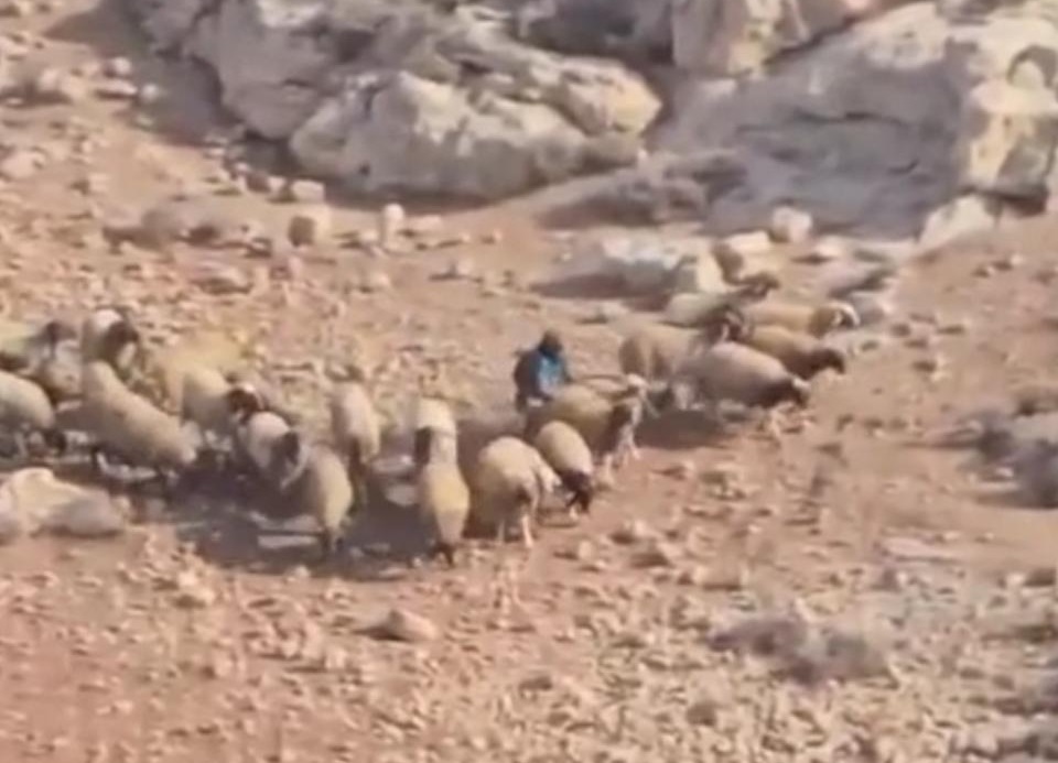 الكوفية بيت لحم - رعى مستوطن، يوم الأحد، أغنامه قرب منازل الأهالي في كيسان جنوب شرقي بيت لحم جنوب الضفة المحتلة.