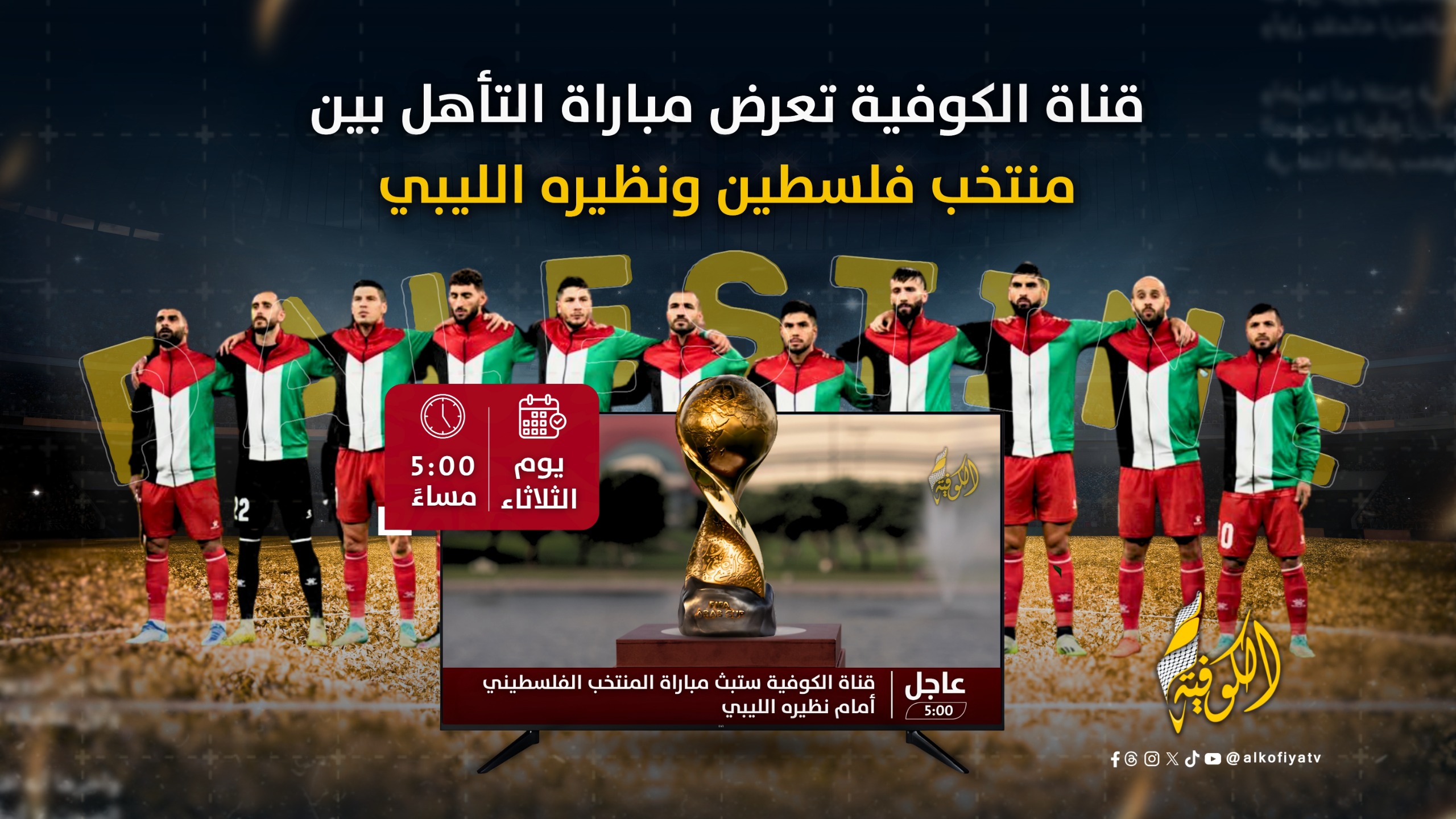 يمكن للجماهير متابعة المباراة مباشرة على شاشة الكوفية، حيث ستقدم التغطية لحظة بلحظة مع تحليلات مباشرة لكل الأهداف والهجمات.