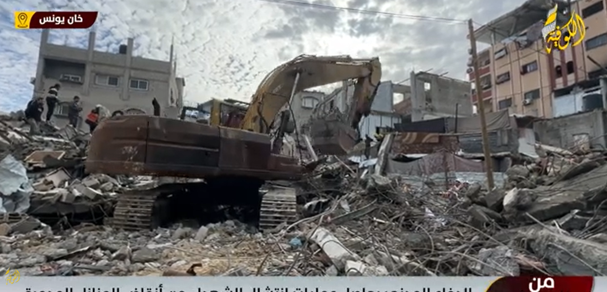 الدفاع المدني ينتشل جثامين شهداء عائلة جلالة في حي الأمل غرب مدينة خانيونس