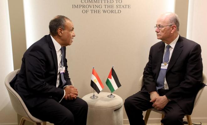 متابعات: بحث رئيس الوزراء الفلسطيني محمد مصطفى، خلال لقائه وزير الخارجية المصري بدر عبد العاطي، آخر التطورات المتعلقة بجهود تثبيت وقف إطلاق النار في قطاع غزة ، والتحركات الإقليمية والدولية لإعادة إعمار القطاع بالتنسيق مع الفاعلين والشركاء الدوليين، وذلك اليوم الأربعاء على هامش منتدى دافوس الاقتصادي، بحضور سفير دولة فلسطين لدى سويسرا والأمم المتحدة في جنيف إبراهيم خريشي.
