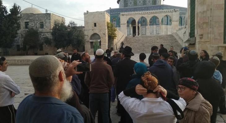 وأفادت مصادر محلية، بأن عشرات المستوطنين اقتحموا المسجد الأقصى على شكل مجموعات، ونفذوا جولات استفزازية في باحاته، وأدوا طقوسا تلمودية، بحماية قوات الاحتلال
