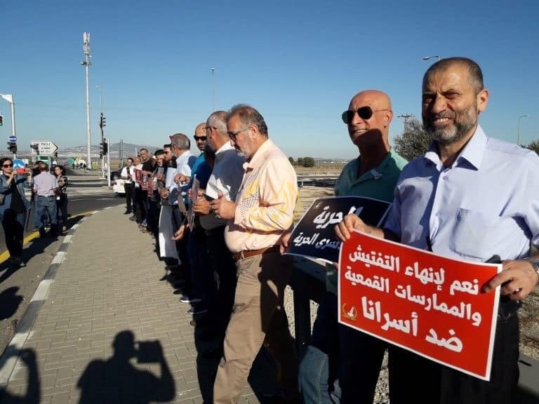 بالصور|| وقفة أمام سجن "مجدو" لدعم الأسرى المضربين عن الطعام