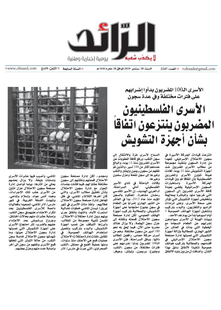 الأسرى ينتزعون اتفاقا بشأن أجهزة التشويش.. أبرز عناوين "ملف الأسير" في الصحف الجزائرية