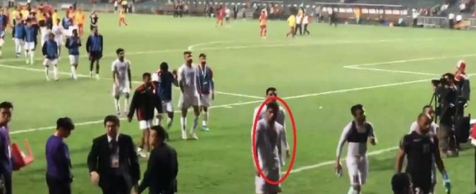 وفي ختام المباراة، وأثناء مغادرة لاعبي الفريقين أرضية الملعب، قام المدافع البحريني سيد مهدي باقر، بحركة نحو جمهور هونغ كونغ، حيث شد طرفي عينيه للإشارة إلى صغر عيني المشجعين واللاعبين في شرق آسيا.