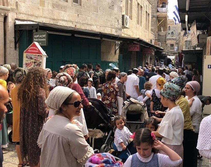 مسيرة حاشدة لمئات المستوطنين في شارع الواد بالبلدة القديمة نظمت ظهر اليوم الاثنين، حيث قام المستوطنون بأداء طقوسهم وصلواتهم، إضافة إلى تشكيل حلقات الرقص والغناء والنفخ "بالشوفار" داخل أسواق وأزقة البلدة على بعد عدة أمتار من المسجد الأقصى، وسط انتشار لقوات الاحتلال ونصب السواتر الحديدية وفرض القيود على تنقل المقدسيين داخل مدينته.