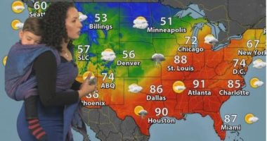 الكوفية وكالات:فاجأت سوزى مارتن، مقدمة نشرة الأخبار الجوية فى برنامجGood Morning America ، متابعيها بظهورها حاملة طفلها على ظهرها فى مشهد غير تقليدى.