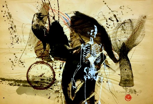 متخيلة وصعبة قاسية في ذاكرة الفنان الذي يحاول أن يجسدها في أشكال تجريديّة فيها من براعة الألفة اللونيّة أكثر من الغرابة والوحشيّة في التعبير, تقول في إنشائها المتكامل لكنها لا تفصح كثيرا وكأنها رموز سريّة فيها من الاحتجاج أكثر من القبول بما آلت إليه حياة الآخرين وحياة الفنان الذي يقول بأنّه متصالح جدا مع نفسه وسعيد بممارسة فعاليات بسيطة مثل ارتداء ملابسه دون تدخّل الآخر أو اختيار أكله في يومه الذي ينقضي في مرسمه الذي يراه صومعته المملؤة بعشرات اللوحات التي لا تتشابه في أشكالها لكن في مضامينها التي ترسل إيعازات لونيّة متقنة جدا في نهاياتها لا تملك كمشاهد عادي إلا أن تتوقف عندها طويلا وهي برأيي نوعا من الفن الشعبي البوب آرت الذي يشبه قليلا فن الكليكرفي الجداري الشائع في الغرب خاصة في المدن الصناعيّة ذات الفوارق الطبقيّة والتي تملك نظاما