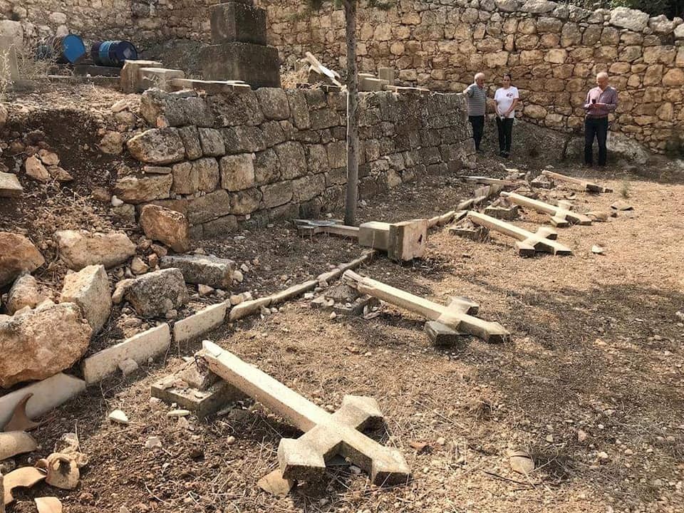 تحطيم شواهد وصلبان قبور في مقبرة دير الرهبان.."صور"