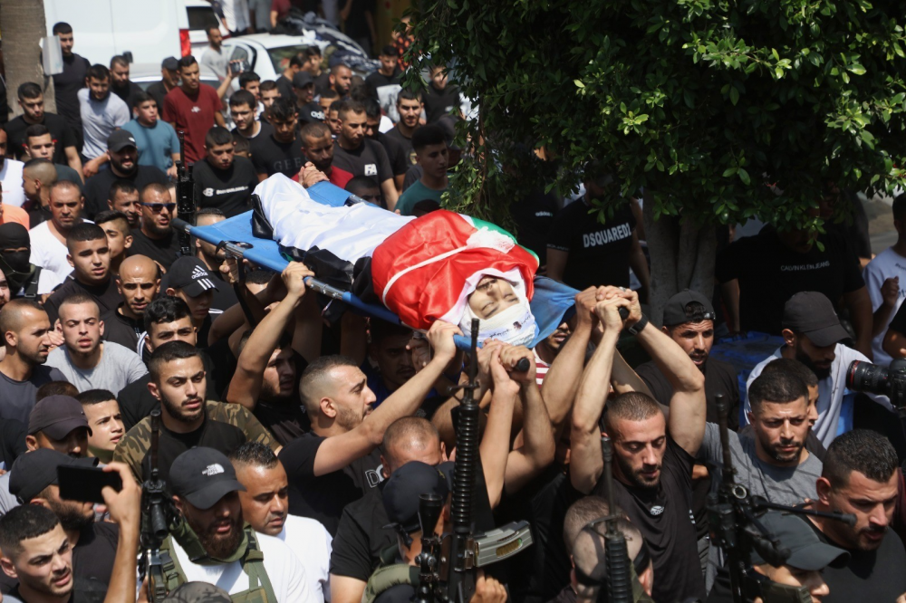 وأكد مراسلنا أن موكب التشييع انطلق موكب من أمام مستشفى الشهيد خليل سليمان يتقدمهم عشرات المسلحين، بعدما لفوا الشهيد بالعلم الفلسطيني وحملوه على الأكتاف، وجاب موكب التشييع شوارع الوسط التجاري من المدينة، وسط الهتافات الداعية للرد على جريمة الاحتلال، ومواصلة الطريق التي سار بها الشهيد.
