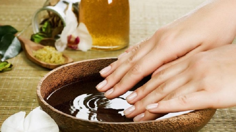 - ضعي أظافركِ في هذا الخليط لمدة تتراوح من 15 دقيقة إلى نصف ساعة.