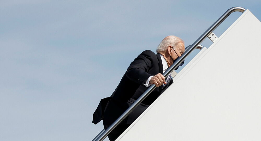 جاء ذلك بعد سقوط  بايدن 3 مرات متتالية، أثناء صعوده درجات السلم المؤدي إلى طائرة إير فورس ون، يوم الجمعة الماضي، المتجهة إلى أتلانتا من جوينت بيس أندروز في ماريلاند.