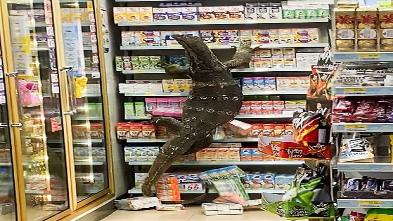 وقال أحد العملاء، نارومبا تانجسين، "توقفت عند المتجر لشراء بعض الطعام ثم رأيت سحلية ضخمة بالداخل، فتوقفت عن الشراء".