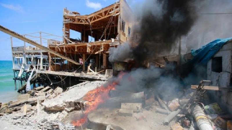 وأطلقت الزوارق الحربية الإسرائيلية عدة قذائف على "مالديف غزة" أدت إلى تدمير أجزاء منه واشتعال النيران فيه.