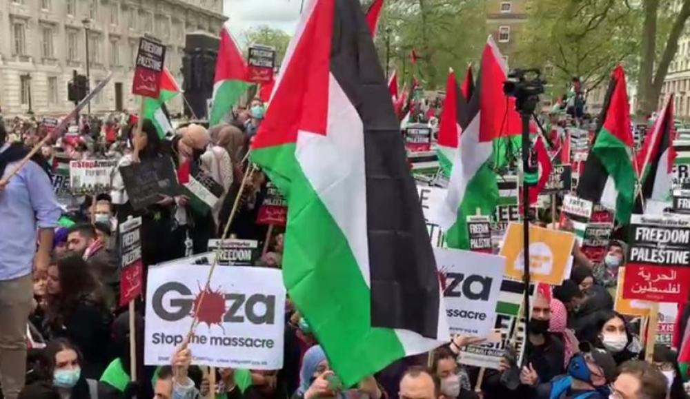 وجابت الحشود أحد الشوارع الرئيسة رافعين الأعلام الفلسطينية، ومرددين الهتافات الداعمة للشعب الفلسطيني والمنددة بالعدوان الإسرائيلي على الشعب الفلسطيني في حي الشيخ جراح بالقدس المحتلة وقطاع غزة وجميع الأراضي الفلسطينية المحتلة.