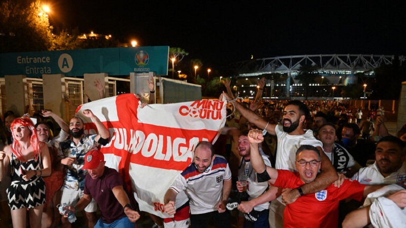 جاء ذلك في الوقت الذي حالت إجراءات احتواء جائحة كورونا دون حضور الجمهور الإنجليزي في ملعب الأولمبيكو بالعاصمة الإيطالية روما باستثناء 5 آلاف مشجع، خرجت الجماهير الإنجليزية إلى الشوارع للتعبير عن سعادتها بتأهل منتخب بلادها التاريخي.