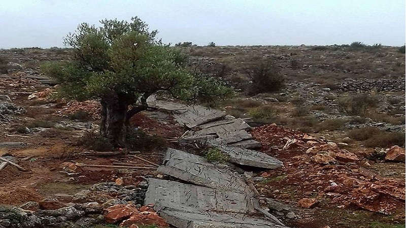 متابعات: هدم جيش الاحتلال، اليوم الإثنين، جدارًا حجريًا استناديًا في بلدة بني نعيم شرق الخليل.