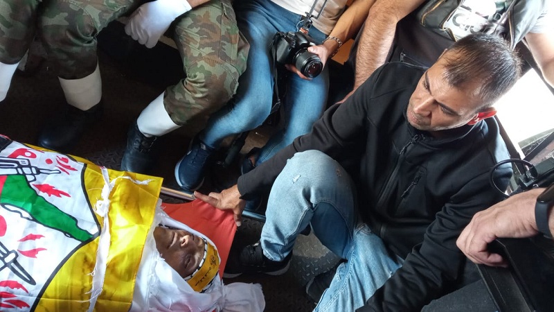 وانطلق موكب التشييع في جنازة عسكرية مهيبة من مستشفى بيت جالا الحكومي، باتجاه منزل عائلته في بلدة الخضر جنوب بيت لحم، التي ألقت نظرة الوداع على جثمانه الطاهر، قبل أن ينقل إلى مسجد البلدة الكبير، حيث أدى المشيعون صلاة الجنازة عليه قبل أن يوارى الثرى في مقبرة الشهداء في مخيم الدهيشة.