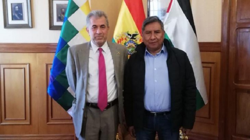 وتابع، أنه "سيقوم بدراسة إمكانية فتح سفارة بوليفية لدى فلسطين رغم الأزمة الاقتصادية التي تعاني منها بلاده بسبب الانقلاب عام ٢٠١٩، وأزمة الوباء التي ضربت اقتصاد البلد".