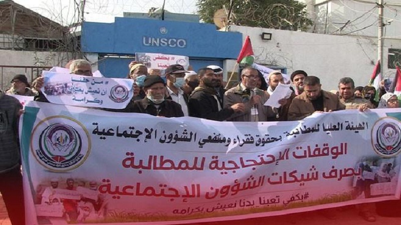 منتفعو الشؤون الاجتماعية يحتجون أمام مقر "اليونسكو" بغزّة