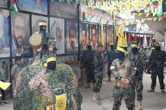 بالصور.. كتائب الأقصى تنظم عرضا عسكريا بمخيم برج البراجنة في لبنان