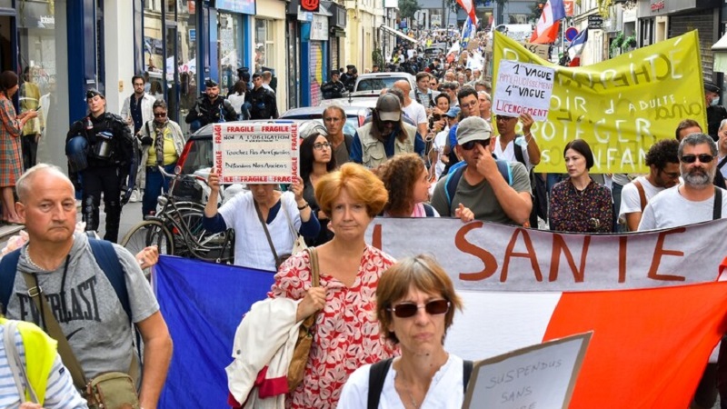 وكالات: شارك آلاف الفرنسيين في تظاهرة، اليوم السبت، رفضا للإجراءات الخاصة بشهادة اللقاح، ولتصريحات الرئيس إيمانويل ماكرون الأخيرة التي وصفت بالنابية تجاه غير المطعمين.