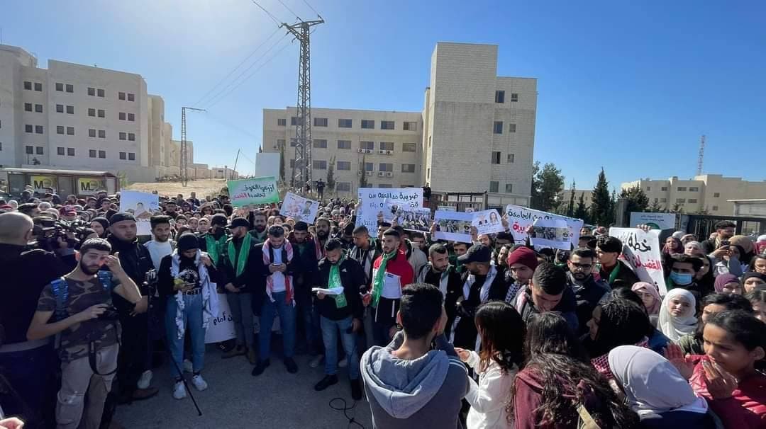ورفع المشاركون في الوقفة لافتات تطالب برحيل "إدارة التطبيع"، والمطالبة بإقالة المتحدث باسم الجامعة غسان الخطيب وعميد شؤون الطلبة عنان الأتيرة.