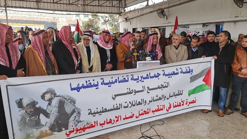 غزة: نظم التجمع الوطني للقبائل والعشائر والعائلات الفلسطينية في قطاع غزة ، اليوم السبت، وقفة تضامنية نصرة لأهل النقب المحتل.