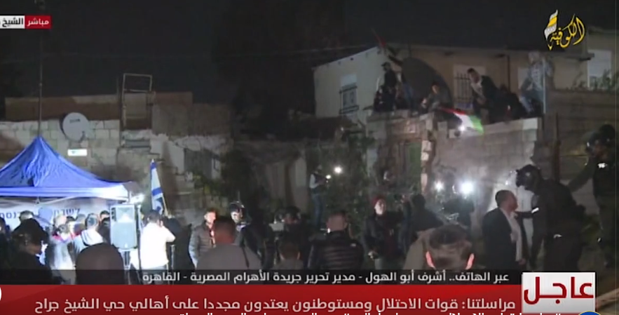 واقتحمت قوات الاحتلال حي الشيخ جراح، اليوم الأحد، لتوفير الحماية للمستوطنين الذي انتشروا في الشوارع والطرقات واحتشدوا في محيط منزل عائلة سالم، واعتدوا على المواطنين وممتلكاتهم، وأقاموا خيمة للمتطرف بن غفير الذي أعاد فتح مكتبه اليوم هناك.