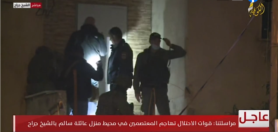 واقتحمت قوات الاحتلال حي الشيخ جراح، اليوم الأحد، لتوفير الحماية للمستوطنين الذي انتشروا في الشوارع والطرقات واحتشدوا في محيط منزل عائلة سالم، واعتدوا على المواطنين وممتلكاتهم، وأقاموا خيمة للمتطرف بن غفير الذي أعاد فتح مكتبه اليوم هناك.